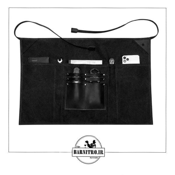 - پیشبند با جیبهای چندگانه: مناسب برای آرایشگرانی که نیاز به نگهداری ابزارهای کوچک مانند شانه، قیچی و اسپری دارند.